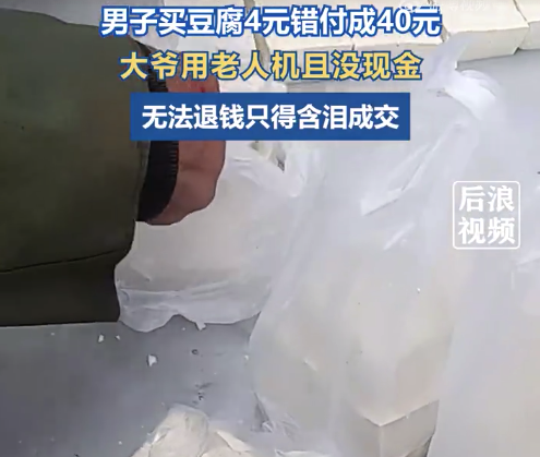 男子买4元豆腐付款成40元含泪包场:大爷用的是老年机没有现金无法退款